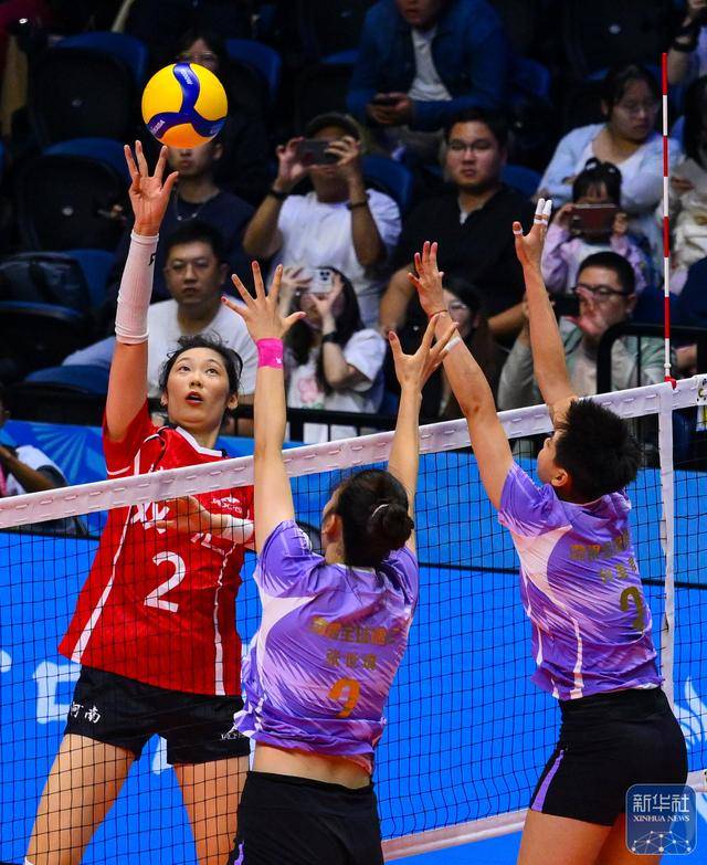 ↑ 河南队球员朱婷(中)在比赛中。