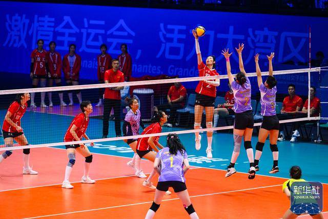 11月7日,在澳门举行的第十五届全国运动会排球女子成年组小组赛A组比赛中,河南队3比0战胜天津队。