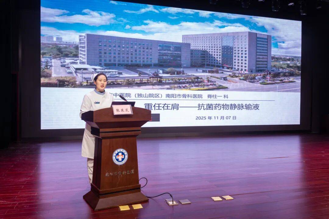 随后的培训课程内容丰富、针对性强。南阳市中医院独山院区(南阳市骨科医院)临床药师芦舒就《抗菌药物的合理应用和规范管理》进行了系统讲解,涵盖了抗菌药物基本原理、合理选用原则及常见误区等内容;护理部培训老师孙敬争详细解读了《合理用药,规范输液》,重点阐述了静脉输液的规范操作、并发症预防及安全管理;静疗学组组长、脊柱一科护士长张东芝则围绕《抗菌药物静脉输液培训》,深入解析了抗菌药物静脉输液的适应证、备案流程及特殊管理要求;静疗学组秘书吕萍还进行了《静脉输液操作技能展示及讲解》,通过实操演示加深了学员对规范流程的理解。