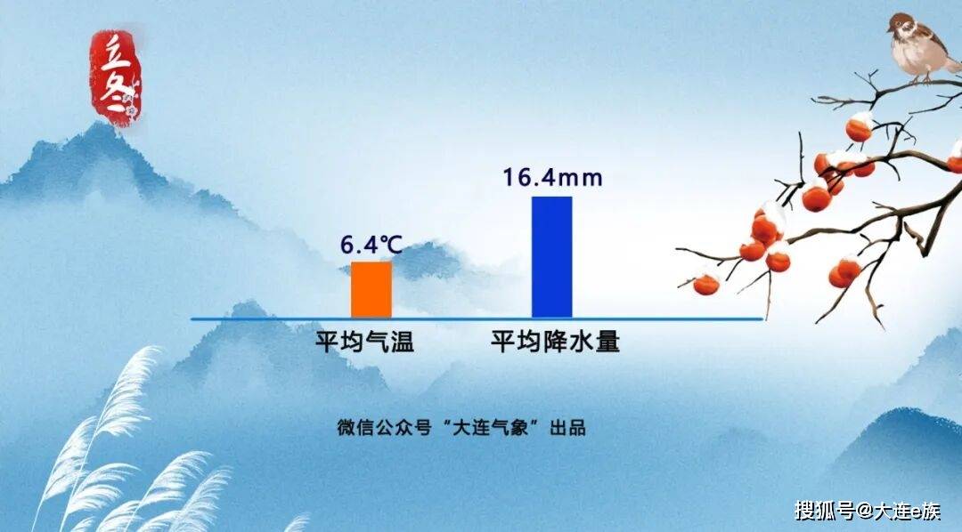 今天我们迎来24节气中的第19个节气——立冬,常年立冬期间,市区的平均气温为6.4℃,北部地区就更冷了,普兰店、瓦房店和庄河的平均气温分别在3.7℃、3.5℃和3.4℃,虽然气温较上个节气大幅下降,但是降水方面却变化不大,市区的平均降水量为16.4mm。