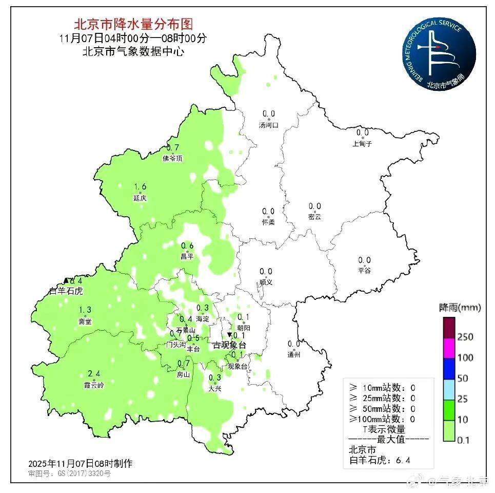 随着降水回波东移,当前西部和城区有小雨或零星小雨。截至7日08时,最大降水量为门头沟白羊石虎,6.4毫米。预计,早晨到上午我市有小雨或零星小雨,午后我市降水将逐渐明显。