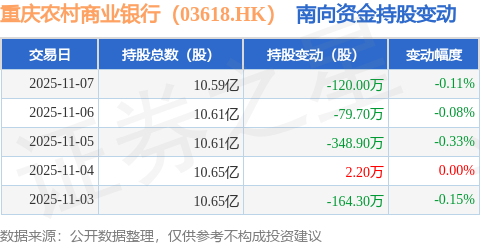 证券之星消息,11月7日南向资金减持120.0万股重庆农村商业银行(03618.HK)。近5个交易日中,获南向资金减持的有4天,累计净减持710.7万股。近20个交易日中,获南向资金增持的有13天,累计净增持4371.8万股。截至目前,南向资金持有重庆农村商业银行(03618.HK)10.59亿股,占公司已发行普通股的42.14%。