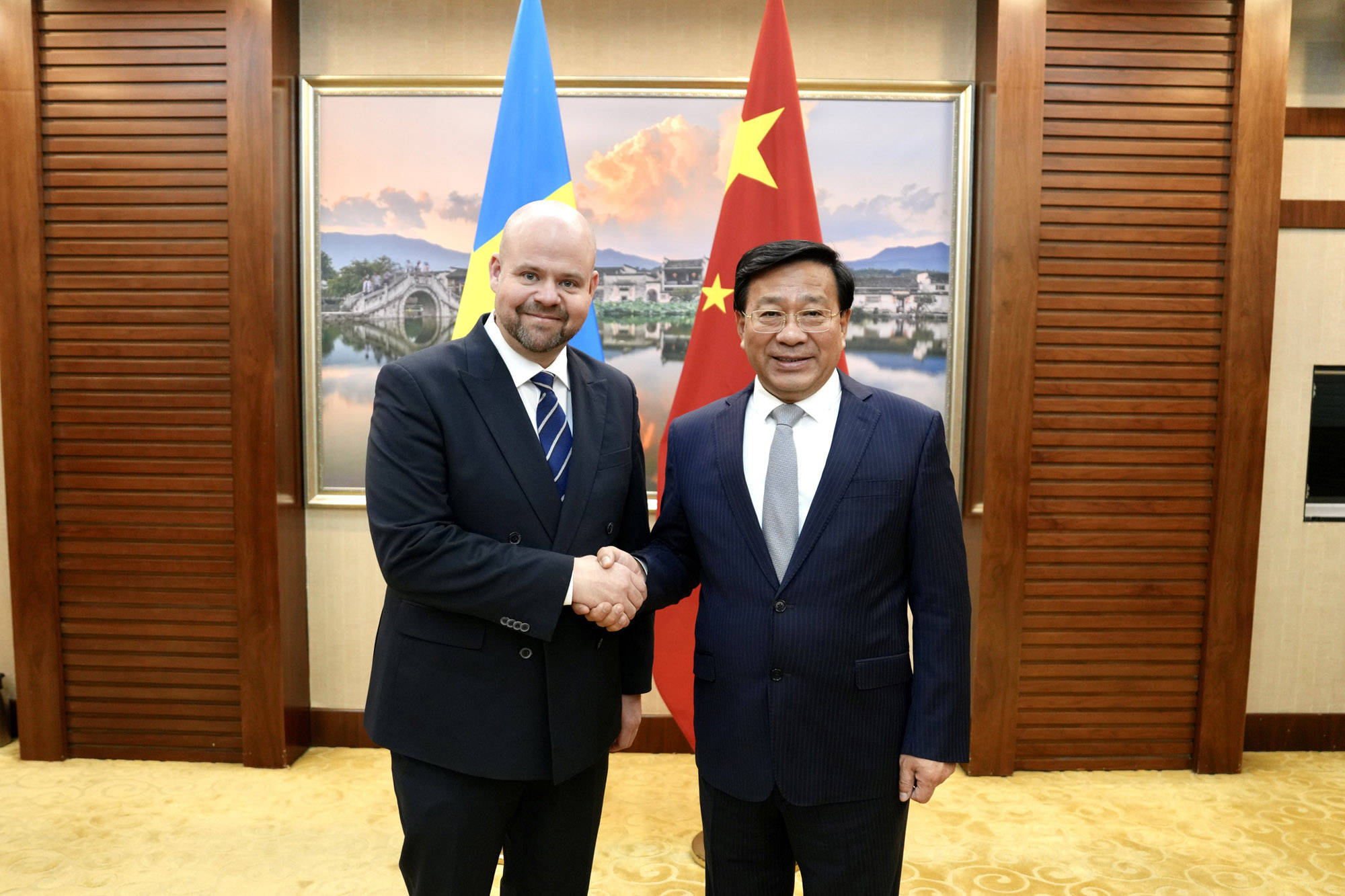 11月7日,农业农村部部长韩俊在京会见瑞典农村事务部部长皮特·库勒格伦,双方就推进中瑞农业农村领域务实合作交换意见。