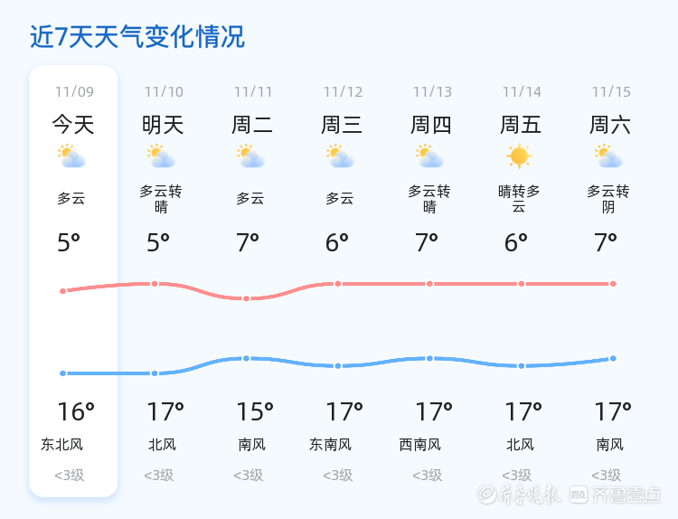未来三天,济宁市天气以多云为主,偶有晴天,气温波动不大,最高气温17℃,最低气温5℃。市民需注意根据天气变化适时增减衣物,尤其是早晚温差较大,建议及时添加衣物,预防感冒。