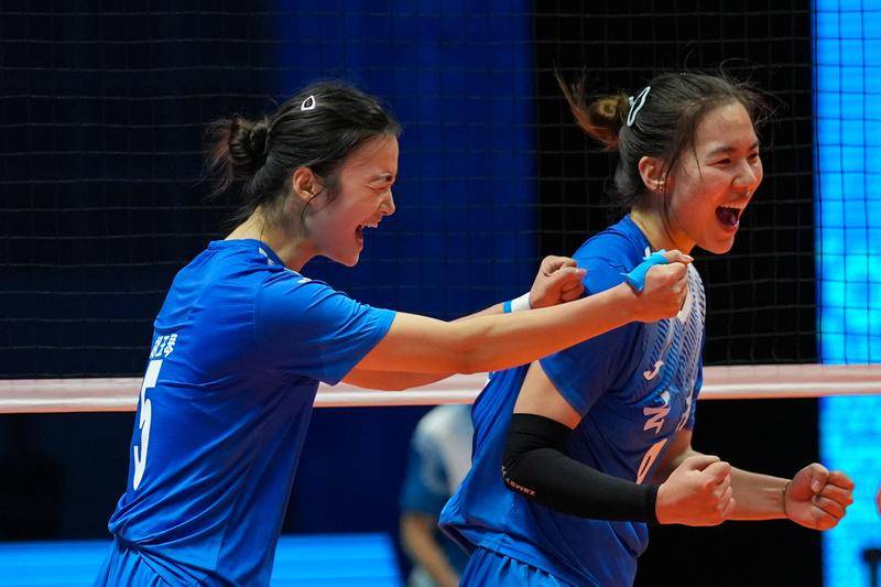 组图:全运-河南女排3-1云南 朱婷和队友庆祝得分