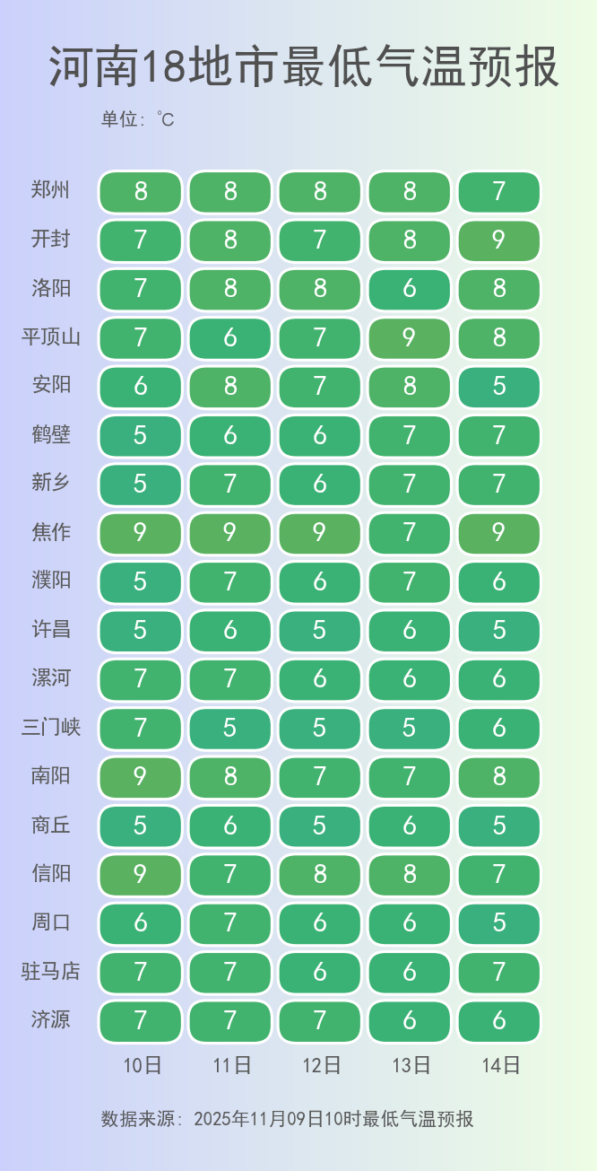 受零星小雨和云量增多影响,明天西部、南部等地最高气温下降3-6度,不过此轮降温短暂,11日起随着天气转晴,气温将快速回升至18度上下。
