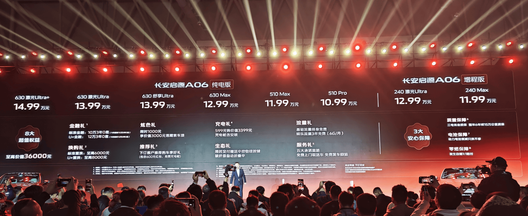 网通社新车11月9日,长安启源A06正式上市,共推出6车型,售价区间为10.99万元-14.99万元。新车基于长安SDA全球纯电架构打造,定位“大美舒享新家轿”,提供纯电、增程两种动力版本。纯电版CLTC 工况下续航里程为510km和630km;增程版CLTC工况下纯电续航为240km,综合续航超2000km,亏电油耗5.2L/100km。