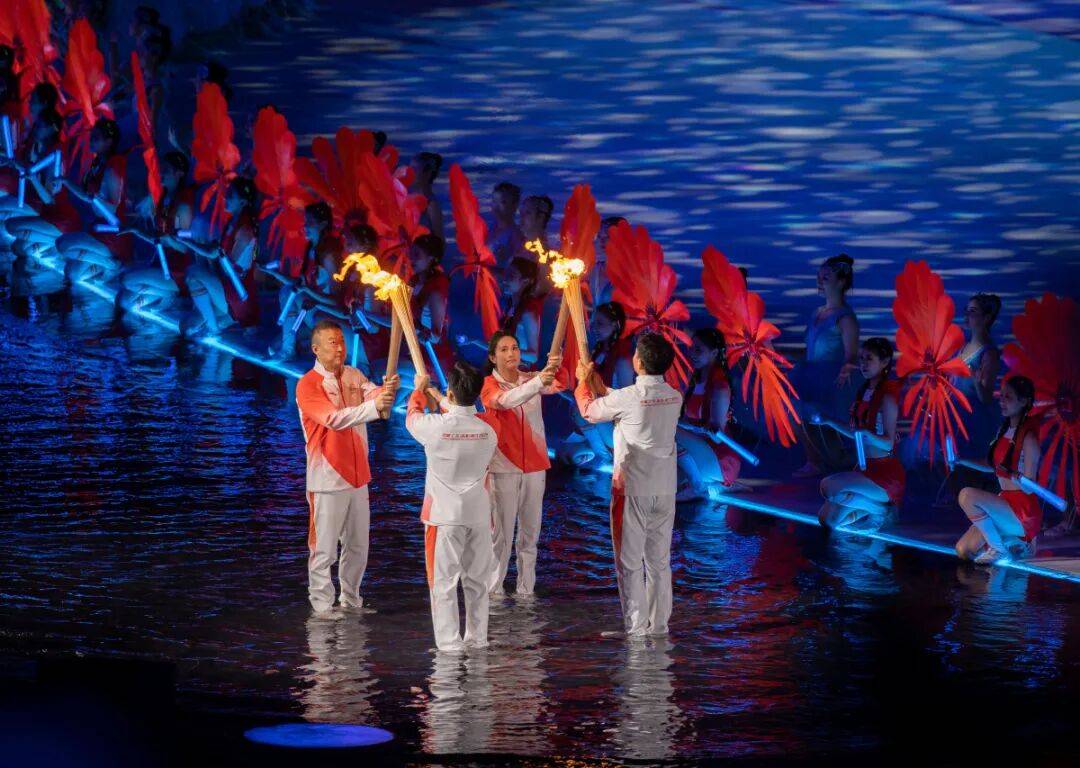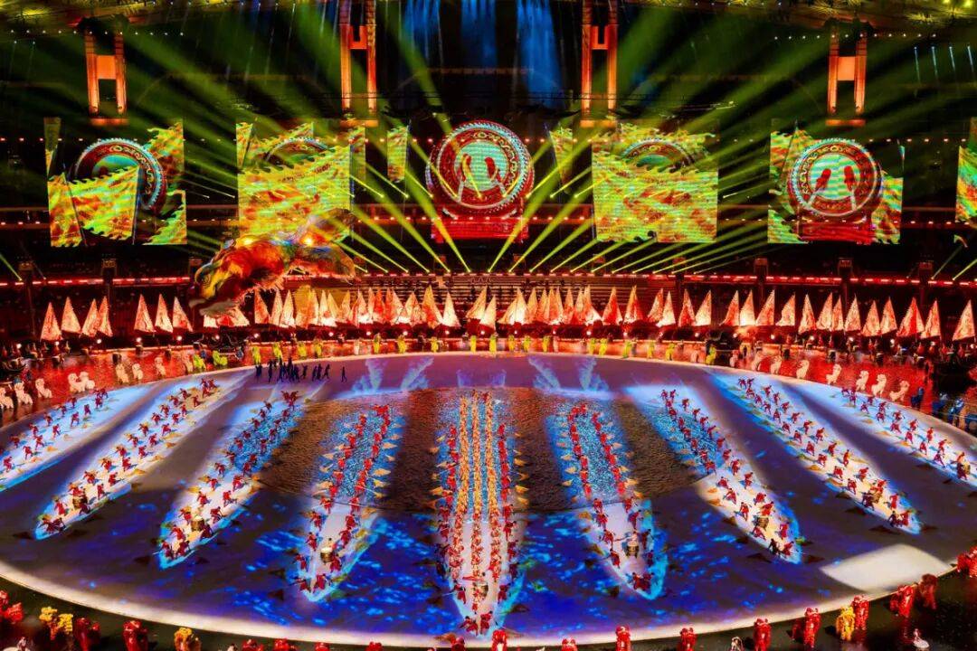 在她身后,50名河南体育健儿向全场观众挥手致意,他们精神抖擞、意气风发。