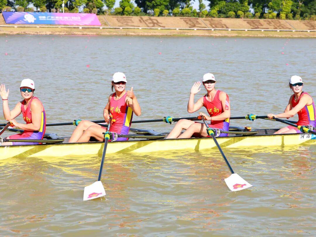 2025年11月10日,在刚刚结束的第十五届全运会竞技体育赛艇女子四人双桨项目决赛中,我省运动员许盈盈、吕扬、韩梦瑶、刘又菲以优异的成绩获得金牌,这是河南运动员在大湾区全运会竞技体育项目获得的首枚金牌!