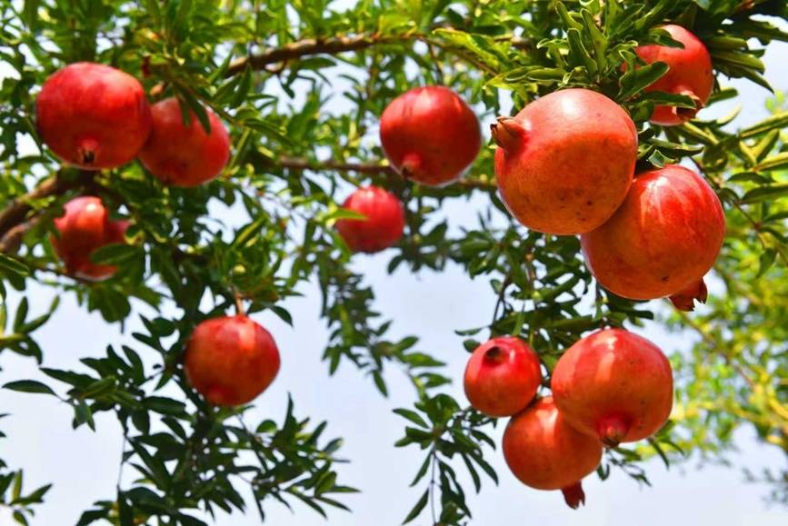 如今,沿着新修的盘山公路上行,7000亩(1亩≈666.67平方米)石榴园层层叠叠铺展开来,红彤彤的果实挂满枝头,风一吹便飘起阵阵果香,曾经寸草难生的荒山已蝶变为“金山银山”。