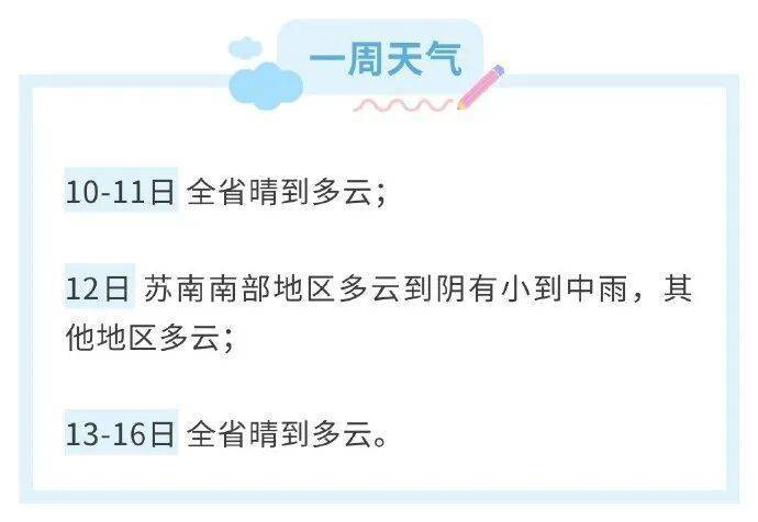 据@江苏气象消息:本周全省大部分地区以晴到多云天气为主,12日受弱冷空气南下和今年第26号台风“凤凰”外围环流影响,苏南南部地区阴有小到中雨,12-13日我省东南部沿海地区、南通海区风力有所增大,最大阵风6-8级。