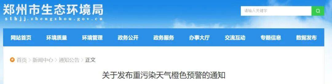 据郑州市生态环境保护工作专班污染防治攻坚办公室消息,郑州市发布重污染天气橙色预警。