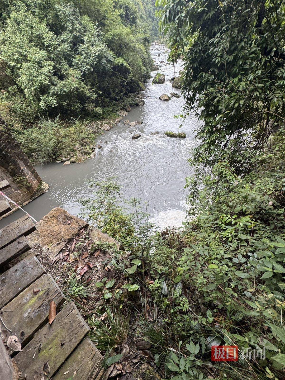 10日清晨,重庆热心市民吴先生(化姓)也跟随者“渔猎齐哥”前往孝子河上游寻找污染源头。道路比较险峻,雨后湿滑泥泞,有消防人员在前方开路,他们到现场后看到已有生态环境部门的工作人员在现场调查。吴先生介绍,还没到河边,就可以明显闻到类似臭鸡蛋的刺鼻臭味,到河边看到不断有黑水从山体的一个溶洞流出,“上游因为下雨,水体是黄色的,和溶洞流出的黑水交汇后,可以看到黄色与黑色水体明显的分界线。”