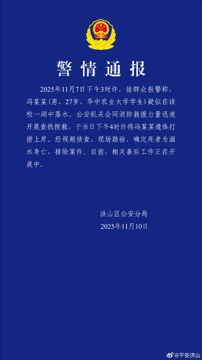 新京报讯 11月10日,平安洪山官博发布警情通报,内容如下: