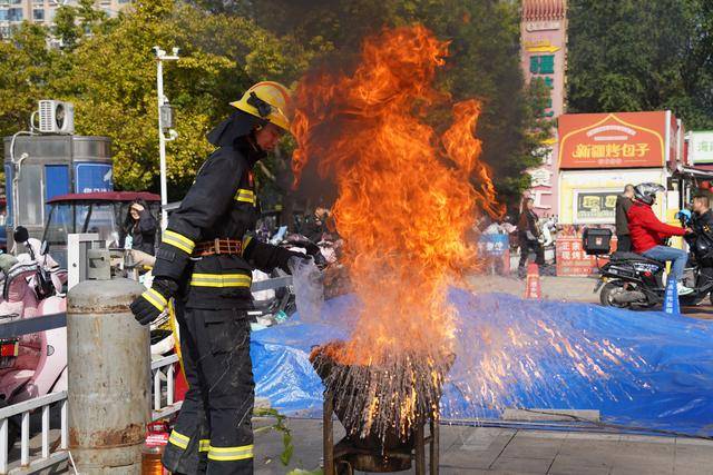 最受欢迎的当数观摩体验区:“水带保龄球”让市民用消防水带“击倒”矿泉水瓶,解锁器材用法;烟雾逃生帐篷里,大家弯着腰、捂口鼻,沉浸式练逃生;“原地着装”体验中,居民们手忙脚乱穿战斗服,直呼“消防员出警速度太不容易”;油锅起火试验,现场演示“盖锅盖灭火”,干货满满。