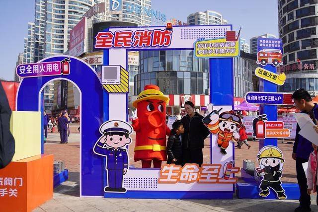 活动现场,入口处的消防元素龙门架成了“网红打卡点”,居民们举着消防主题道具拍照留念;“幸运大转盘”前排起长队,完成打卡任务就能抽奖赢小礼品,欢笑声不断。
