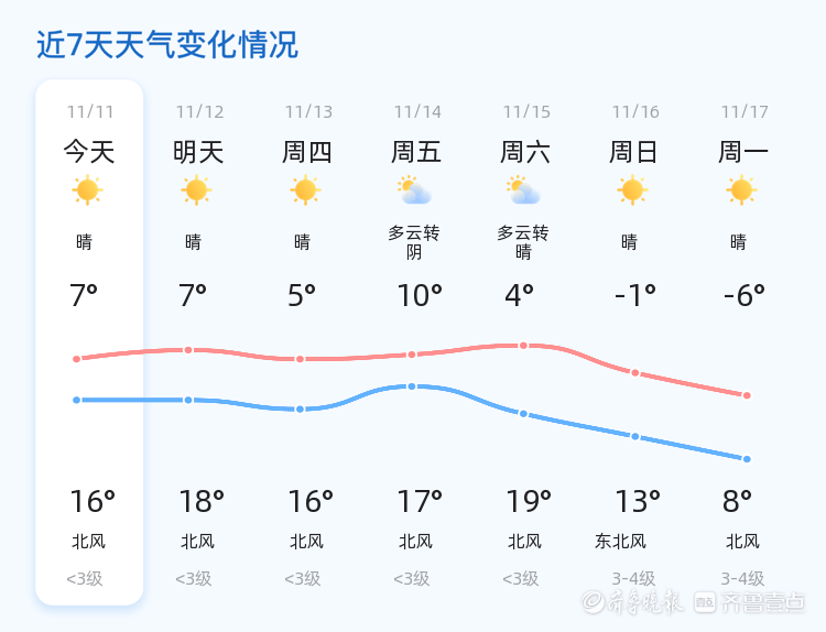 明天(11月12日)天气依然晴朗,但气温有所上升。明天最高气温将达到18℃,最低气温为7℃,较今日略有升温。风力依然较小,为北风,风力等级小于3级。市民可抓住这波升温天气,安排户外活动。
