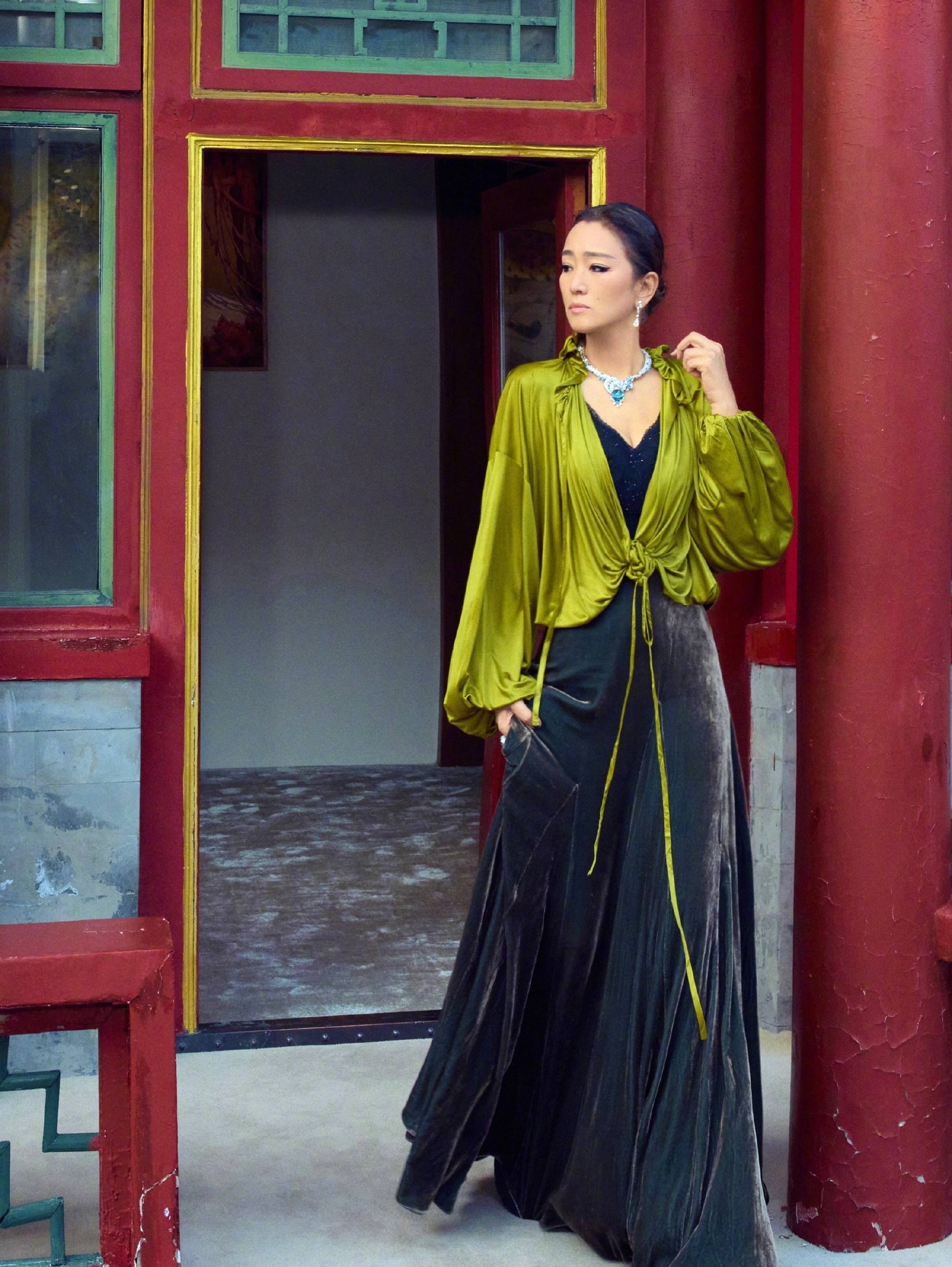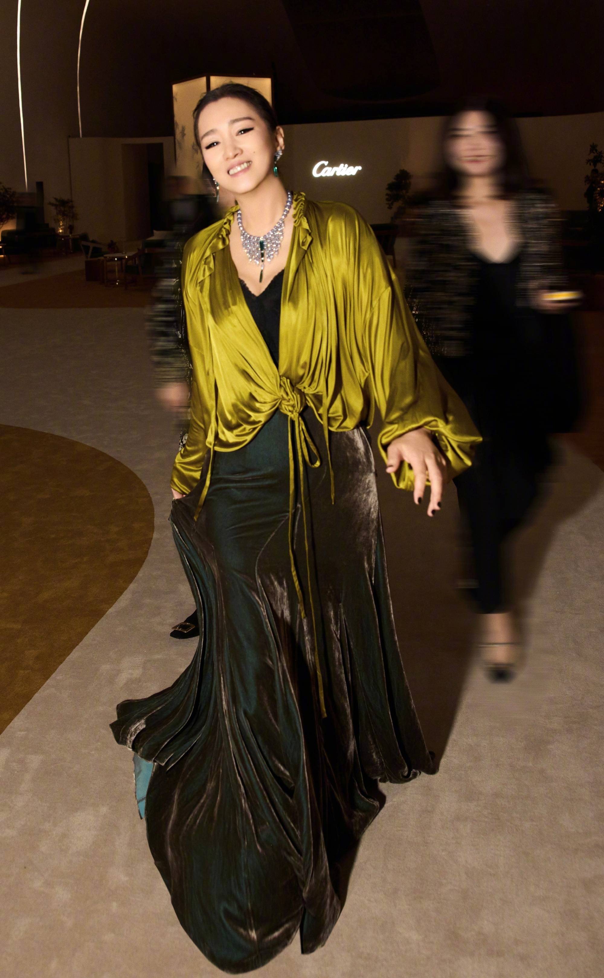 搜狐娱乐讯 近日,一组巩俐参与时尚活动的大片曝光,只见她身穿绿绸衬衫配黑丝绒裙。