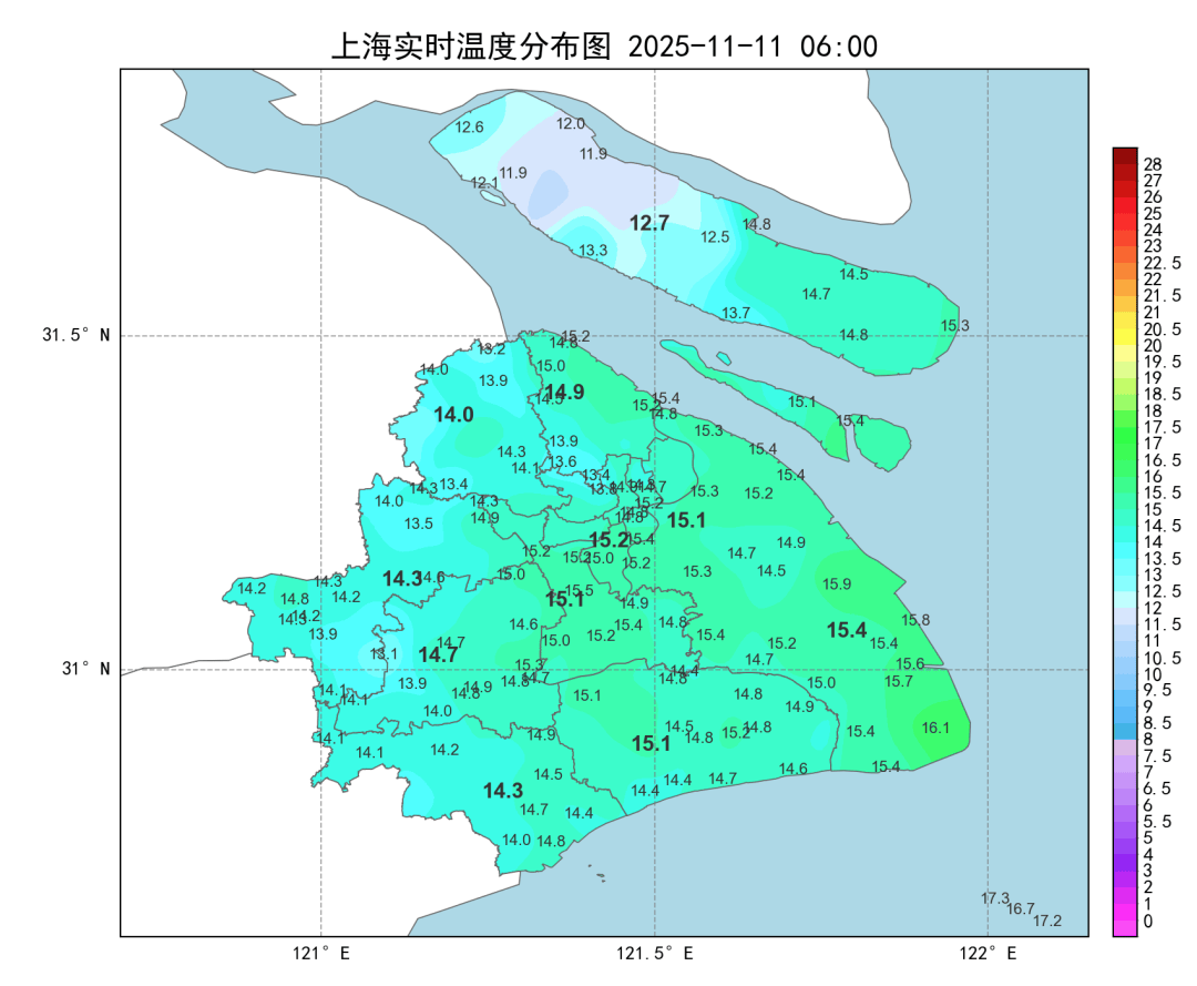 受冷空气和台风“凤凰”外围的共同影响,周中上海将有一次风雨天气过程。雨水主要出现在周三,预计雨量在小雨到中雨量级。周三起风力开始增大,周四陆地最大阵风6级,沿江沿海地区阵风6~7级。本周后期天气转好,温差拉大,早间气温较低,部分郊区可能跌至个位数。预计下周初本市受冷空气影响,气温将会明显下降。