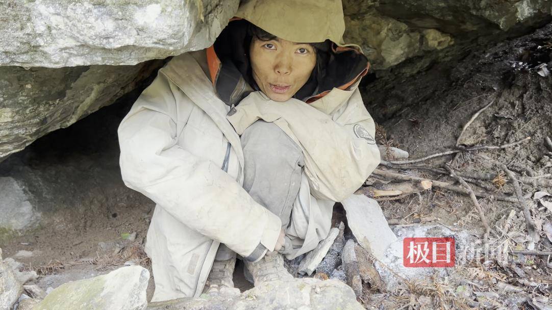 赛事视频显示,17号选手“冷美人”杨朝芹蜷缩在一个高约一米的山洞里,冲着镜头笑着打招呼:“我太幸运了,没有被雨淋到。”其状态略显疲惫。