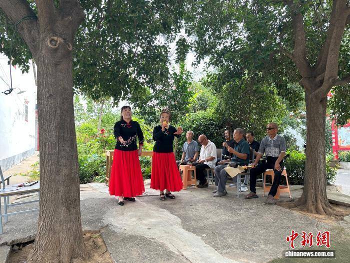 图为“戏曲普法小分队”正在为村民演唱曲剧小段,普及法律知识。(资料图) 王佳宁 摄