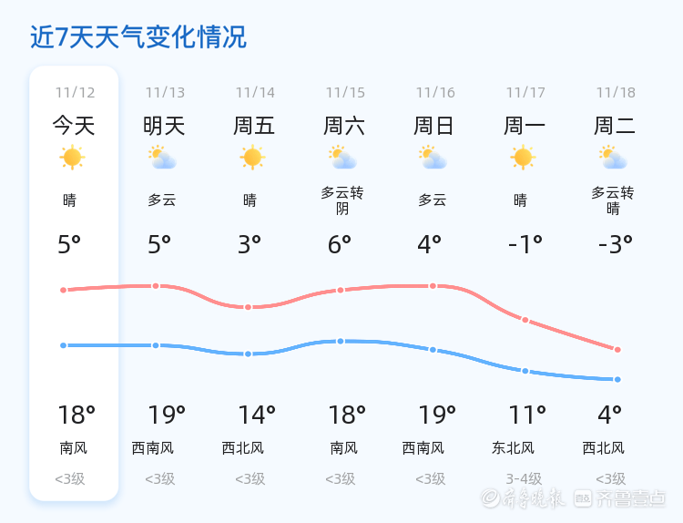 未来三天,淄博市天气趋势为晴转多云,气温波动较大。周五气温将有所下降,最高气温为14℃,最低气温为3℃,周六和周日天气以多云为主,气温逐渐回升。周一时将有较强北风,气温骤降,最高气温仅为11℃,最低气温降至-1℃,市民需特别注意防风保暖。