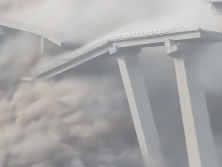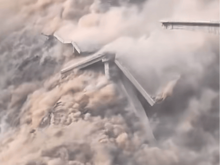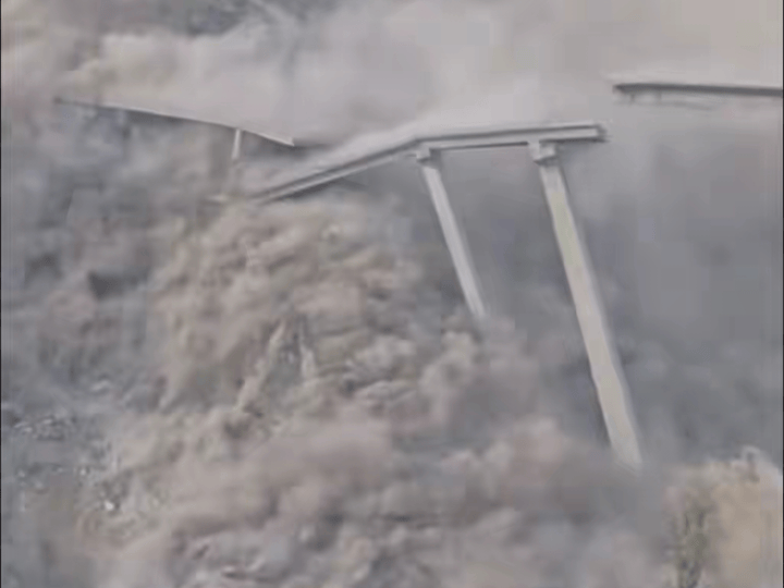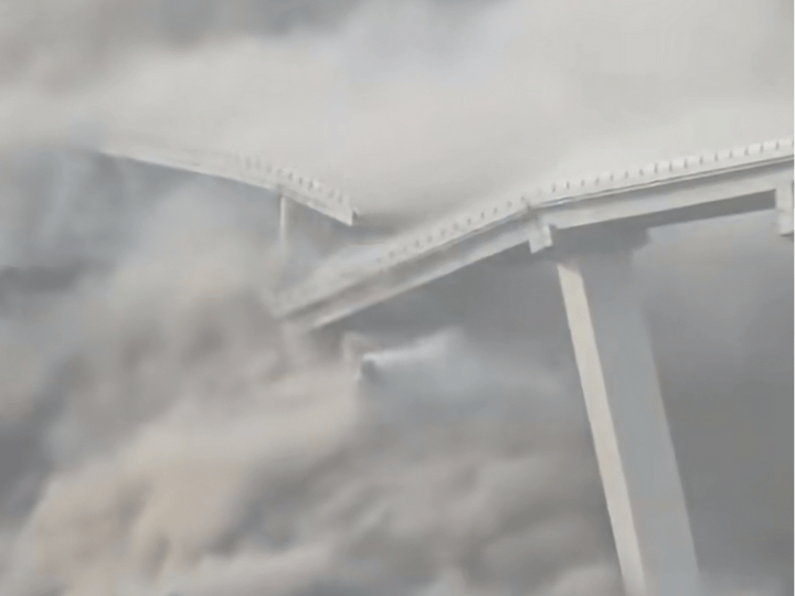 从媒体发布的视频来看,这座特大桥的主桥体已坠入下方的大渡河东源,今日一桥飞架两岸,天堑变通途,两岸人们翘首以盼多年的通车梦想,也随着那一阵轰隆隆的巨响而轰然倒塌。