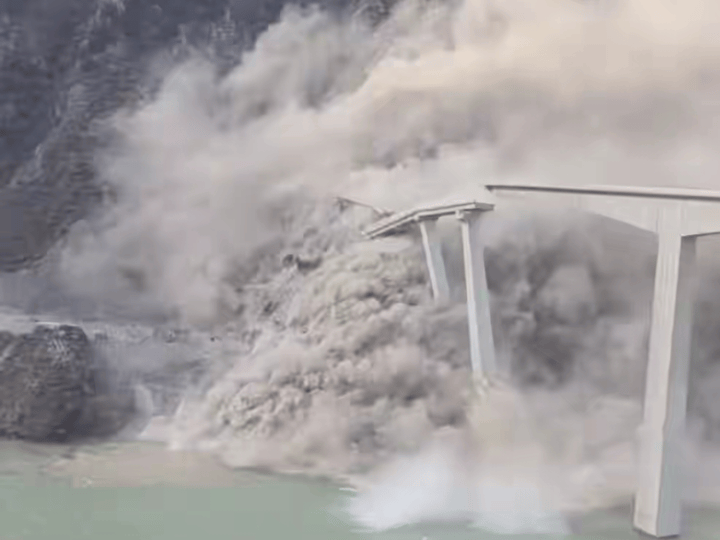从垮塌现场视频看,靠近山体一侧的桥墩与桥面率先断裂,这表明边坡滑动产生的推力直接作用于桥梁基础。若设计阶段为边坡配备了足够数量的抗滑桩,或在桥头设置了截水系统,或许能延缓甚至阻止滑坡发生。