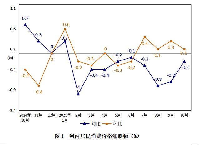 2025年10月份河南居民消费价格同比下降0.2% 环比上涨0.1%