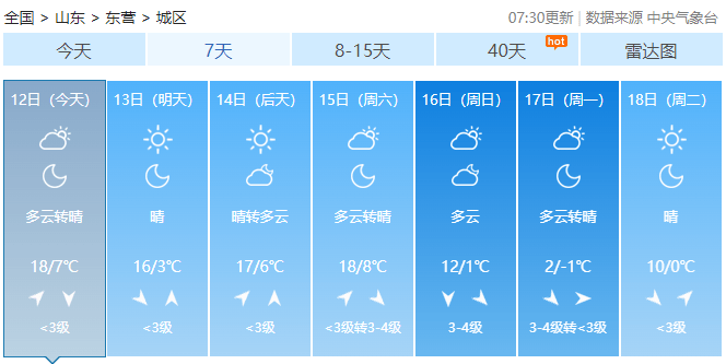 东营未来几天天气预报