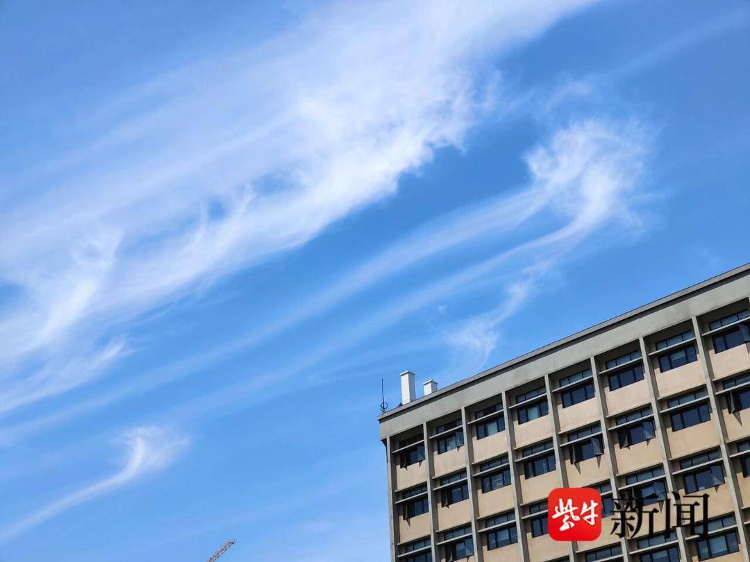 阳光明媚时,天上的几缕薄薄白丝就是卷云。卷云属于高云族,由冰晶组成,带着长“拖尾”,被风塑造成羽毛、钩子、马尾等形态。