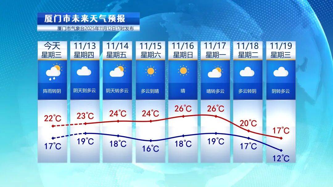 台风“凤凰”外围环流和冷空气携手送雨,昨天(11日)夜间至今天(12日),我市各地出现了阵性降水,截至今天16时,全市普降小雨,局部中雨。气温低迷,今天清晨,厦门本站最低气温仅17.3℃,刷新今年下半年新低,白天该站最高气温也只有21.9℃。