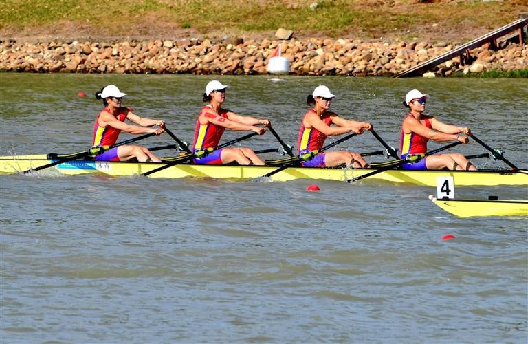 11月10日,第十五届全运会赛艇项目女子四人双桨决赛在广州举行,奥运冠军吕扬携手队友刘又菲、韩梦瑶、许盈盈,为河南代表团拿下本届全运会竞体比赛项目首枚金牌。 本版图片均为本报记者 邓放 摄