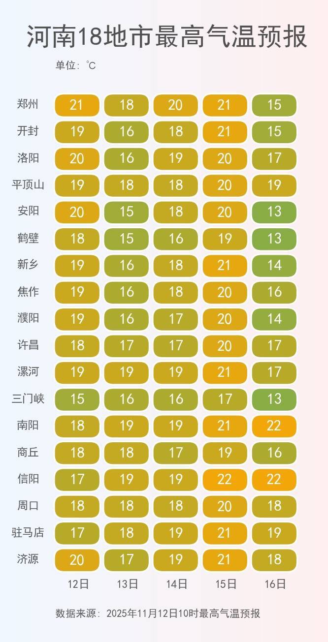 河南省气象台预报,16-17日,全省最高气温下降10℃左右,18-19日清晨大部地区最低气温将跌破冰点,西部高海拔山区将有雨夹雪或小雪,提醒大家要及时关注天气变化,做好防寒保暖准备。
