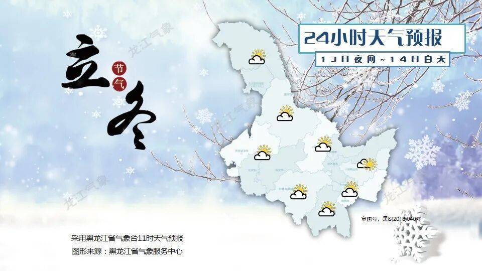 13日夜间最低气温:大兴安岭北部-28~-26℃,大兴安岭南部-22~-20℃,黑河、伊春北部-17~-15℃,伊春南部、齐齐哈尔北部、绥化、鹤岗、佳木斯东部-11~-9℃,其它地区-9~-7℃。