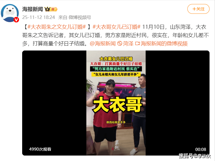 2025年11月10日,大衣哥朱之文家再传来好消息,大衣哥亲口承认,女儿朱雪梅已经订婚了。消息一出,不少关心他们一家的网友们都替她高兴。