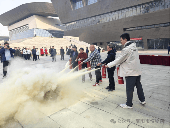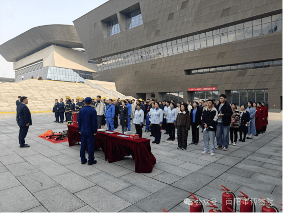 今年11月9日是第34个全国消防日,为进一步强化南阳市博物院全体员工的消防安全意识,提升应对突发火情的协同作战能力和应急处置水平,切实保障观众与馆藏文物安全,11月13日下午,南阳市博物院与南阳市图书馆、文化馆、大剧院、新大正物业公司共同举办了实战化的消防应急疏散及灭火实操联合演练。