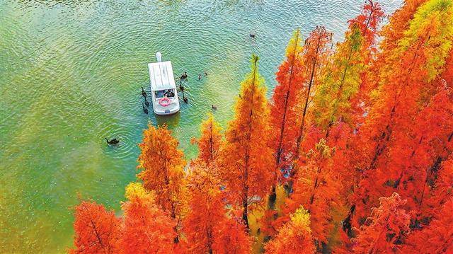11月12日,游客在洛阳市从政坊游玩。初冬时节的从政坊游园五彩斑斓,美景如画,吸引众多市民游客前来观赏。 李卫超 摄