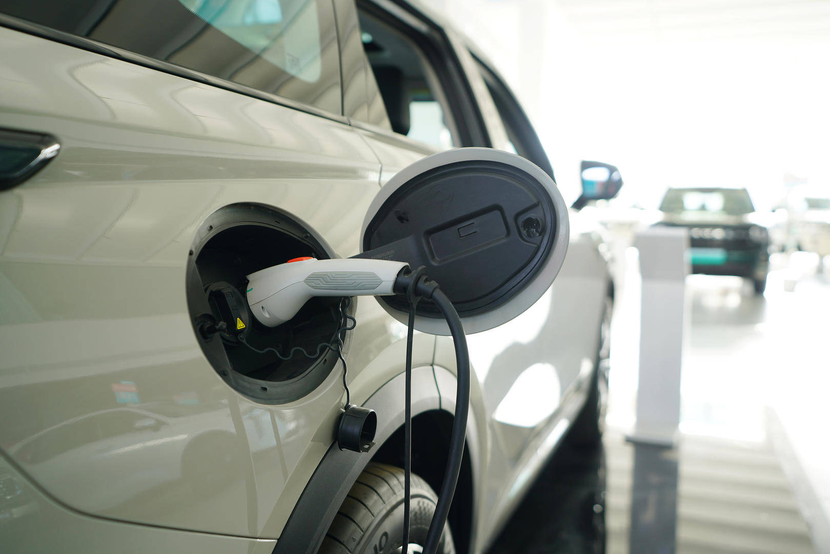 ↑4S店为已销售的新能源车辆充电。图据视觉中国