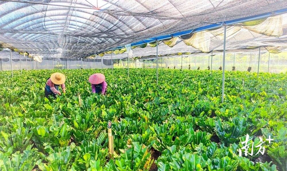 “我们荣盛公司这个基地长期雇了七八位阿姨,采收高峰期还会多请十多个临时工,让大家都有活干、有钱挣。”公司主管何欣妮介绍。这片绿意盎然的产业,不仅为粤港澳大湾区输送着健康食材,也悄然成为当地村民增收致富的新路径。