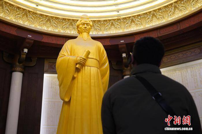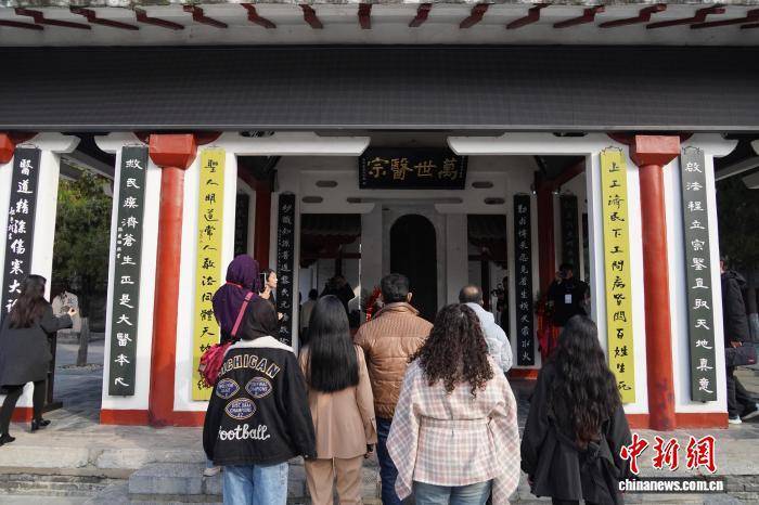 图为外国青年瞻仰医圣张仲景像。连晨宇 摄