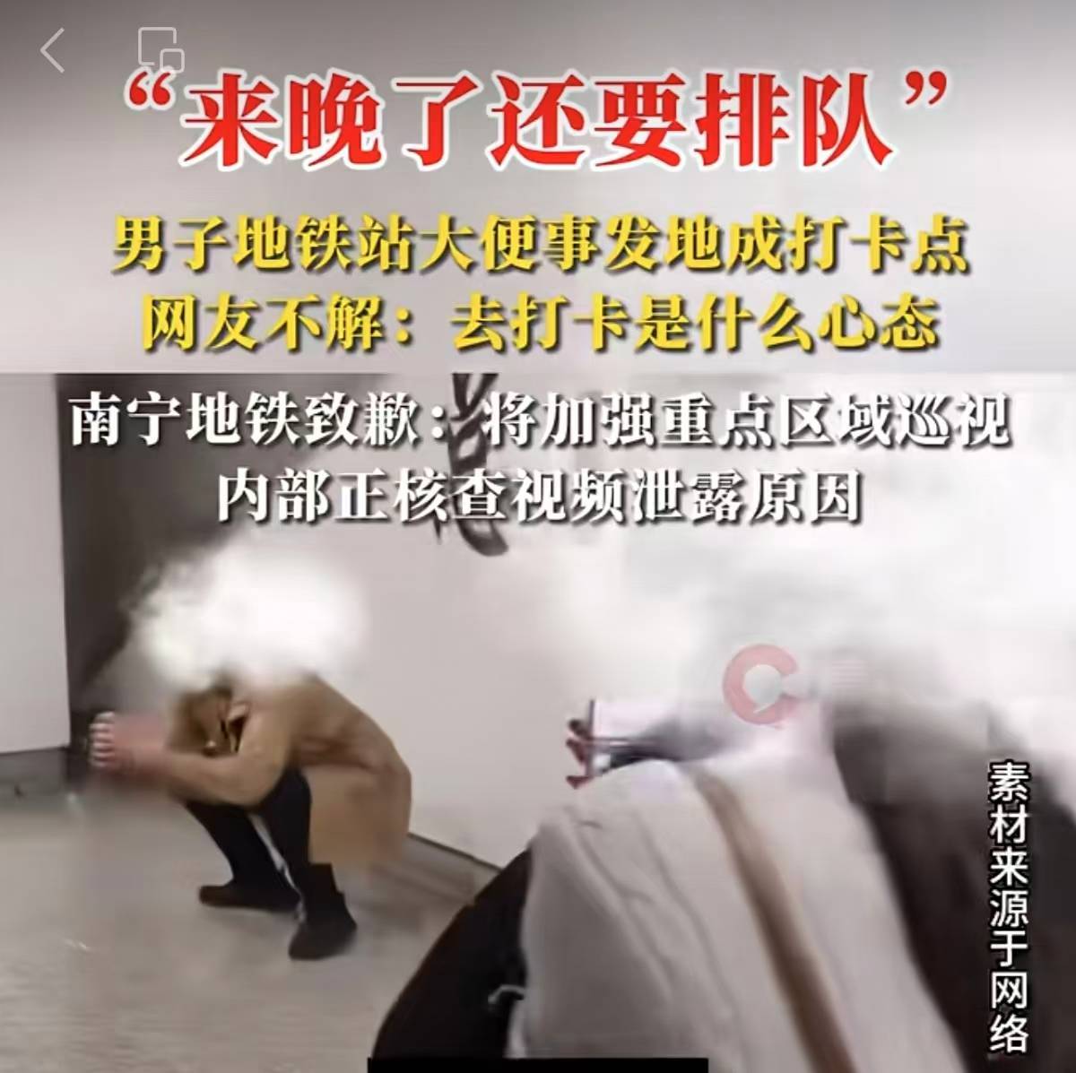而且,在地铁站排队打卡“大便事发地”,既可能影响地铁正常运营秩序,也给其他乘客带来感官不适,本身就是一种失范行为。