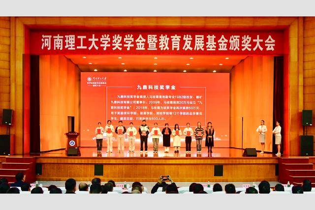 据悉,河南理工大学在财政经费的重要保障和社会力量特别是广大校友的大力支持下,构建起了以奖学金和教育发展基金为主的完善资助体系。教育发展基金由广大校友及校友企业捐助,目前运行项目55项,累计资助师生7400余人次。此次颁奖大会对“国家奖学金”“国家励志奖学金”“孙越崎奖学金”“朱训教育奖励基金”“傅恒志院士基金”“姚晓峰、余丽奖学金”“九鼎科技奖学金”“柳雪春助学金”“孙成奖学金”“美好前程助学金”“腾飞建工奖助学金”“本勤·助力助学金”“才子基金奖学金”“脉库科技助学金”“王威阅读之星奖学金”等15项奖励的师生进行了表彰。