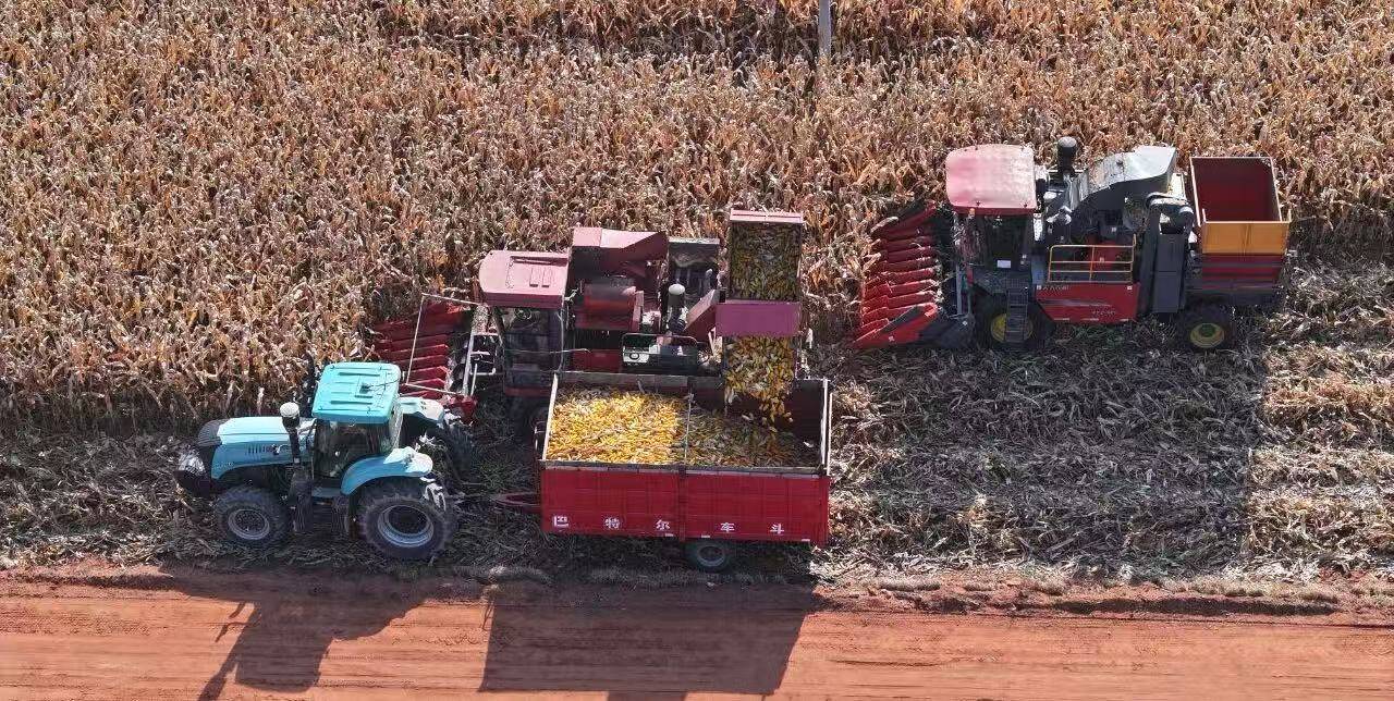 深秋的毛乌素沙漠东南部,萨拉乌苏河蜿蜒流淌,滋养着两岸的沃野。在鄂尔多斯市乌审旗无定河镇小石砭村,660亩玉米林绿浪翻滚,村民史贵杰望着沉甸甸的玉米穗,嘴角的笑意藏不住:“参加联合体,把地托管给合作社后,亩产比以前多了200多斤,还省了不少心!” 这片孕育过河套人、披毛犀的古老土地,正借着一场“分”与“合”的农业变革,续写着新的丰收故事。