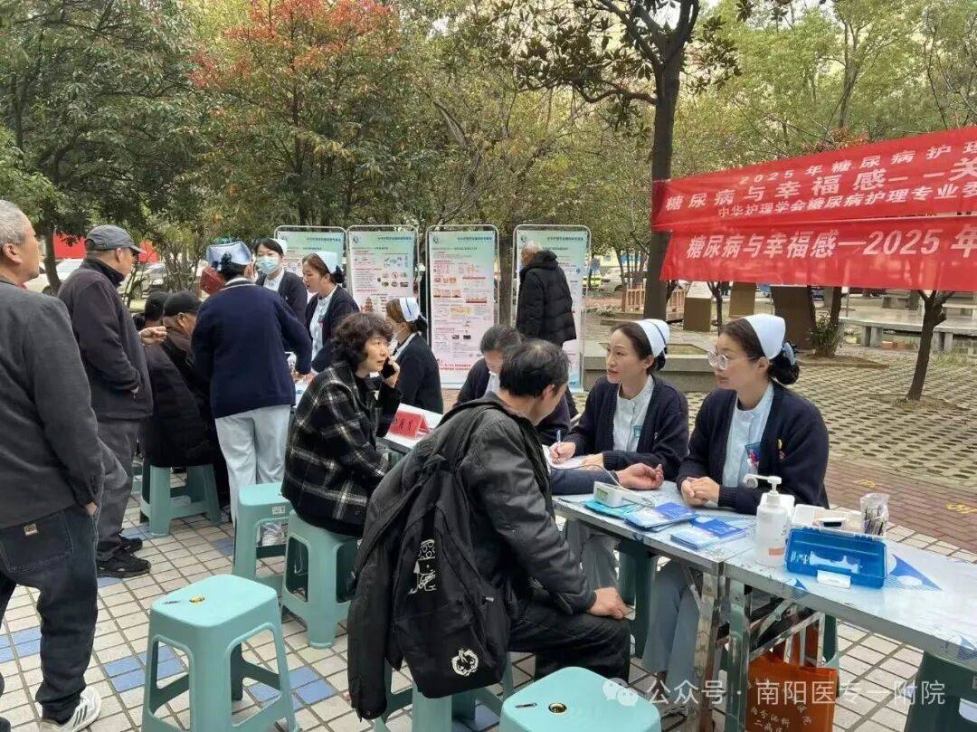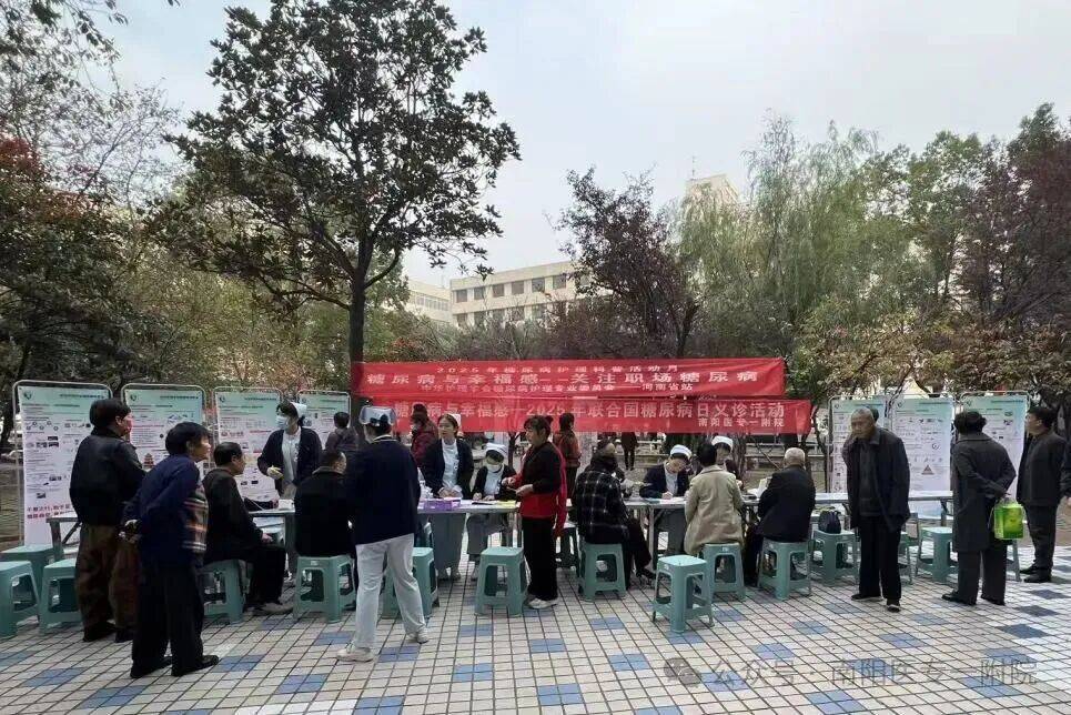 2025年11月14日,正值第19个“联合国糖尿病日”,南阳医专一附院内分泌科一病区、二病区联合公共卫生科在医院花园广场,开展“糖尿病与幸福感——关注职场糖尿病”为主题的公益义诊活动,吸引了众多市民朋友积极参与。