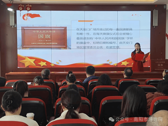 南阳市博物院讲解员孙园媛为大家做“南水北调精神”“国旗故事”主题宣讲。带大家重温国旗故事、感悟爱国真谛,让红色基因在社区落地生根。