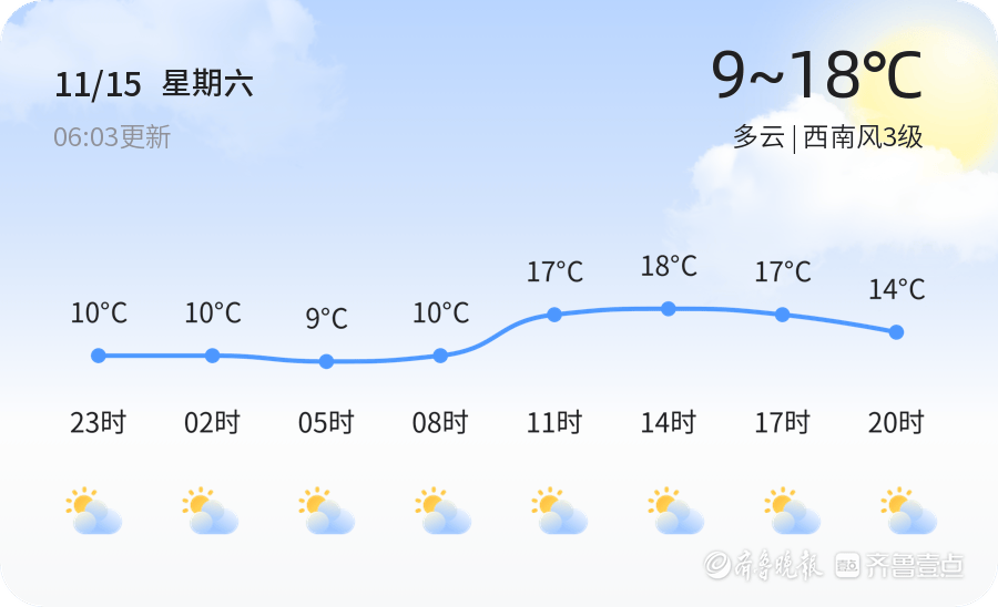 今天是11月15日,星期六,农历九月廿六,烟台市迎来多云天气,气温在9℃到18℃之间,西南风3级,湿度67%,空气质量良好。各区天气情况一致,均为多云,风力较小,适宜户外活动。 明天,11月16日,烟台市天气仍为多云,气温略有上升,预计最高气温19℃,最低气温10℃。风力增强至4-5级,西南风持续。与今天相比,明天的天气变化不大,但风力有所增强,市民外出时请注意防风。 未来三天,烟台市天气将呈现多云转阴的趋势,11月17日气温有所下降,最低气温5℃,最高气温13℃,风力4-5级,西北风。11月18日将有小雨天气,气温进一步下降,最高气温仅为6℃,最低气温5℃,市民需注意保暖,出行携带雨具。11月19日天气转为多云,气温略有回升,但风力仍然较大,建议市民适时添衣,注意防风。 温馨提示