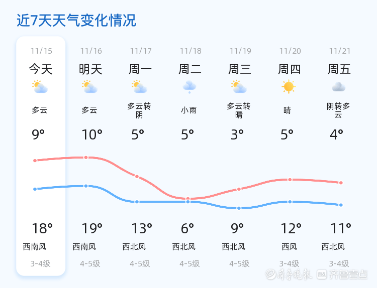 本周烟台市气温波动较大,市民需根据天气变化及时增减衣物,预防感冒。未来三天风力较大,建议市民外出时远离广告牌等易坠落物,确保安全。此外,11月18日有小雨天气,道路湿滑,驾车时请减速慢行,保持车距,确保行车安全。