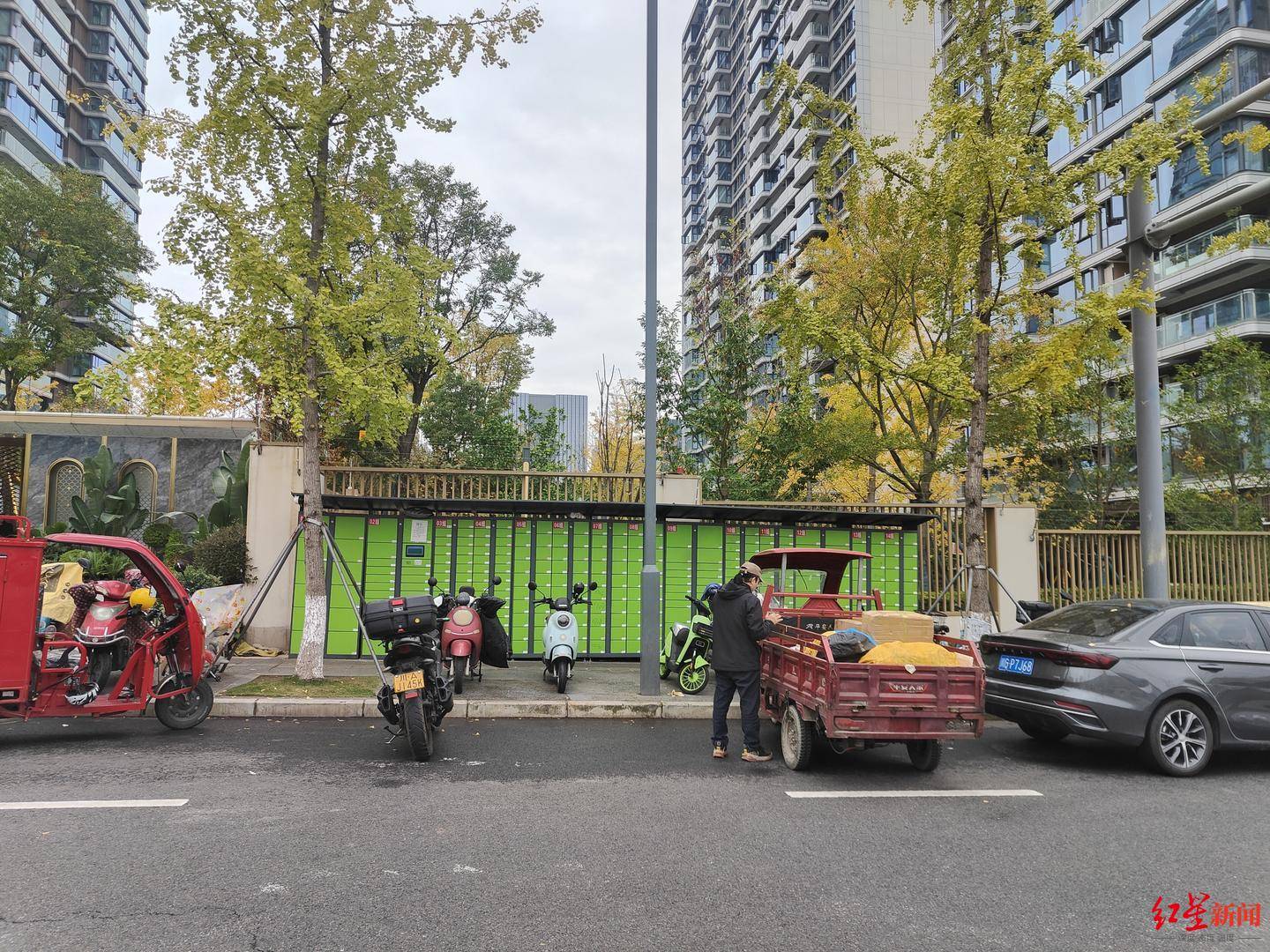 11月12日、13日,红星新闻记者连续两天实地走访了解到,瑞云府及周边傲云天府、新川华府等多个小区存在部分快递停止配送的问题,多名快递员表示,由于小区内未设置快递站,直接配送到家会增加成本,放在小区门口的临时取货点则易被投诉,当前之举实属无奈。