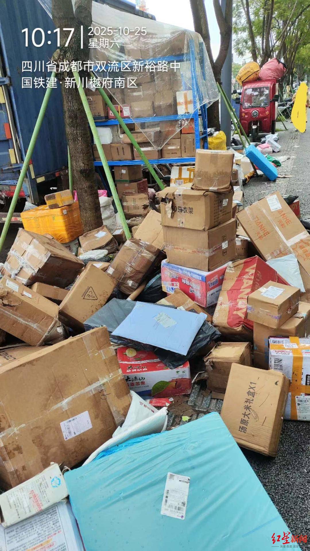 ▲此前,一些快递堆放在小区外